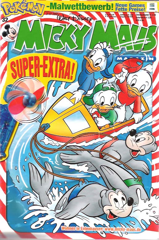Cover illustrations for 'Tom & Jerry' and 'Micky Maus Magazine'.