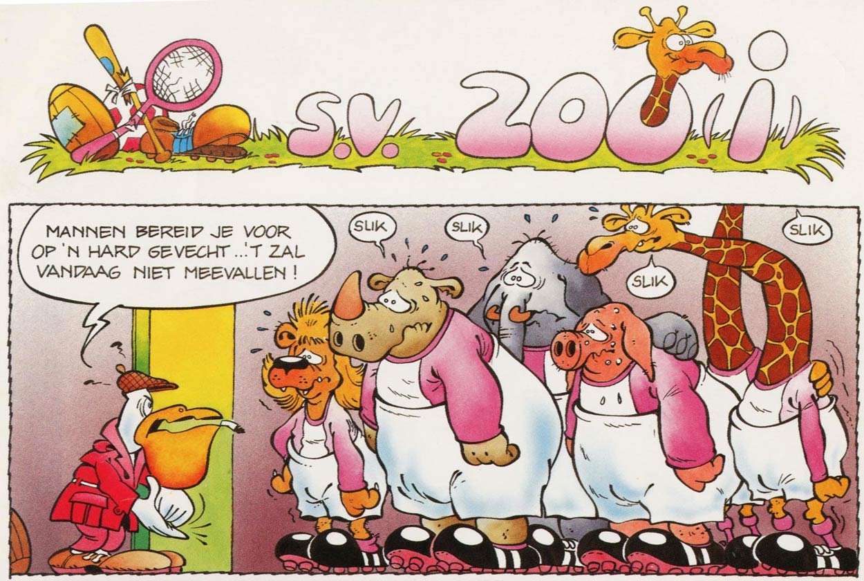 For the gossip magazine Weekend, Ray Nicholson created the gag comic 'Familie Kijkgraag' (1984-1985). Prior to its publication, the comic was anounced as a new Toon van Driel strip, but he was only the writer. The published episodes were credited to "Nick Ray" and drawn by Ray Nicholson. Nicholson's funny animal humor series 'SV Zoo(i)' (1987-1988, created through the Fimla agency in Tilburg) and 'Dumpie en Dodo' (1989-1990) were made for Kuifje and Okki, respectively.