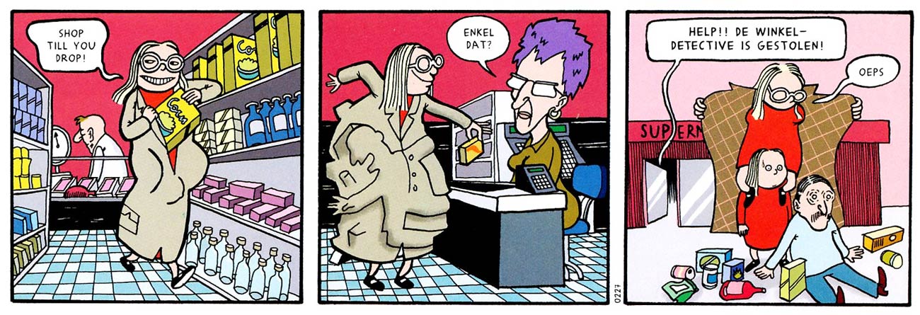 'Kinky & Cosy': Translation: "Shop till you drop!" - Cashier: "Only this? Help!! The shop detective has been stolen!" Kinky: "Oops."