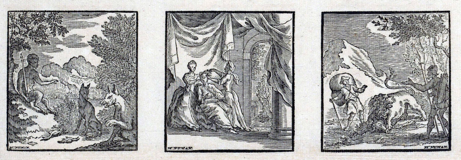 'Voorstellingen uit de Aesopus fabelen', print with artwork based on Aesop's fables (1779).