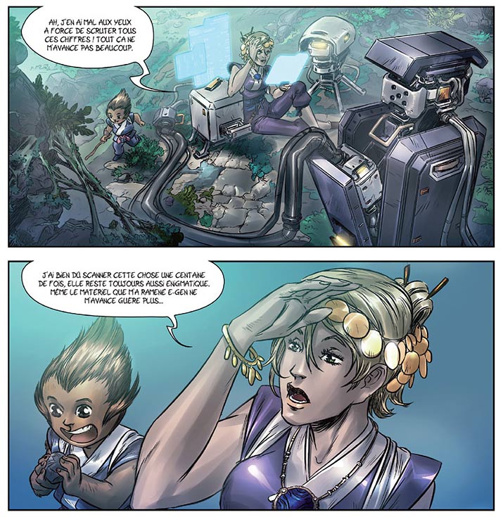 Between 2008 and 2010, Ogaki then made three books of the science fiction series 'Meteors' with writer Fred Duval in that same collection. He made his debut as an allround author with the children's fantasy series 'Azur', of which Delcourt published four books between 2011 and 2013. It was followed by Ogaki's second solo-series, 'Terra Prime' (since 2015), an allegory about the deviances of humanity through a group of space settlers. Philippe Ogaki is also the colorist of the series 'La Rose Écarlate' by Patricia Lyfoung (Delcourt, since 2006).