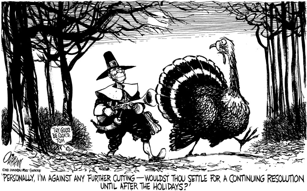 1981 cartoon by Pat Oliphant, depicting U.S. President Ronald Reagan.