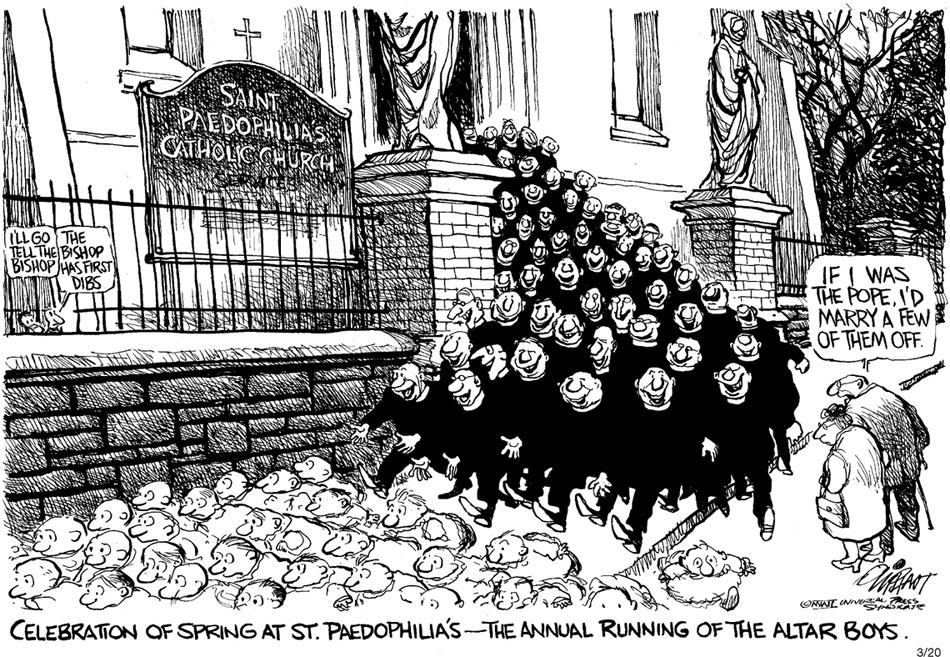 The infamous Altar Boys cartoon, depicting child sexual abuse scandals in the U.S. Catholic Church (20 March 2002).