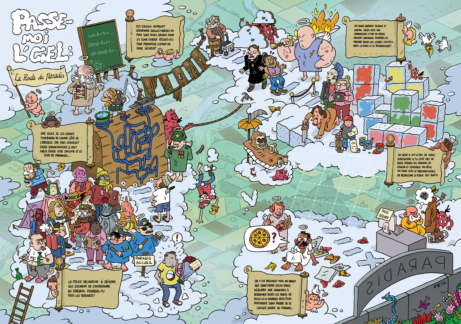 Game spread for Spirou #4428 (2023), referencing the comic series 'Passe moi l'Ciel' by Stuf and Janry.