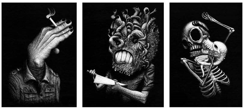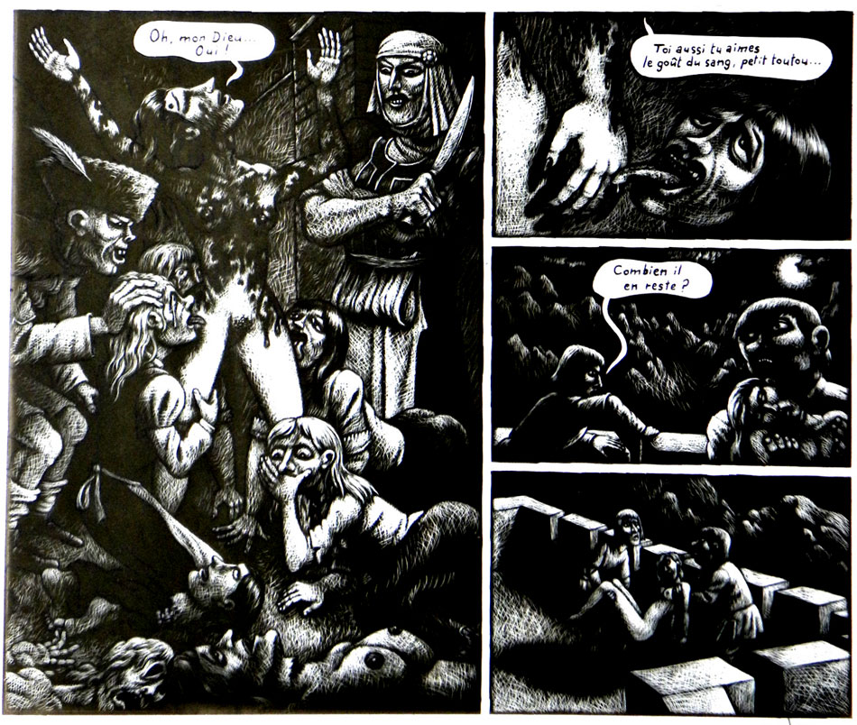 Emre Orhun is a Turkish-French book illustrator, photographer and comic artist. He is most notable for his graphic novels 'Erzsebet' (2010) and 'La Malédiction du Titanic' (2012), about respectively Hungarian "blood countess" Elizabeth Bathory and the Titanic disaster. His body of work is notable for its macabre scratchboard artwork, featuring disturbing imagery.