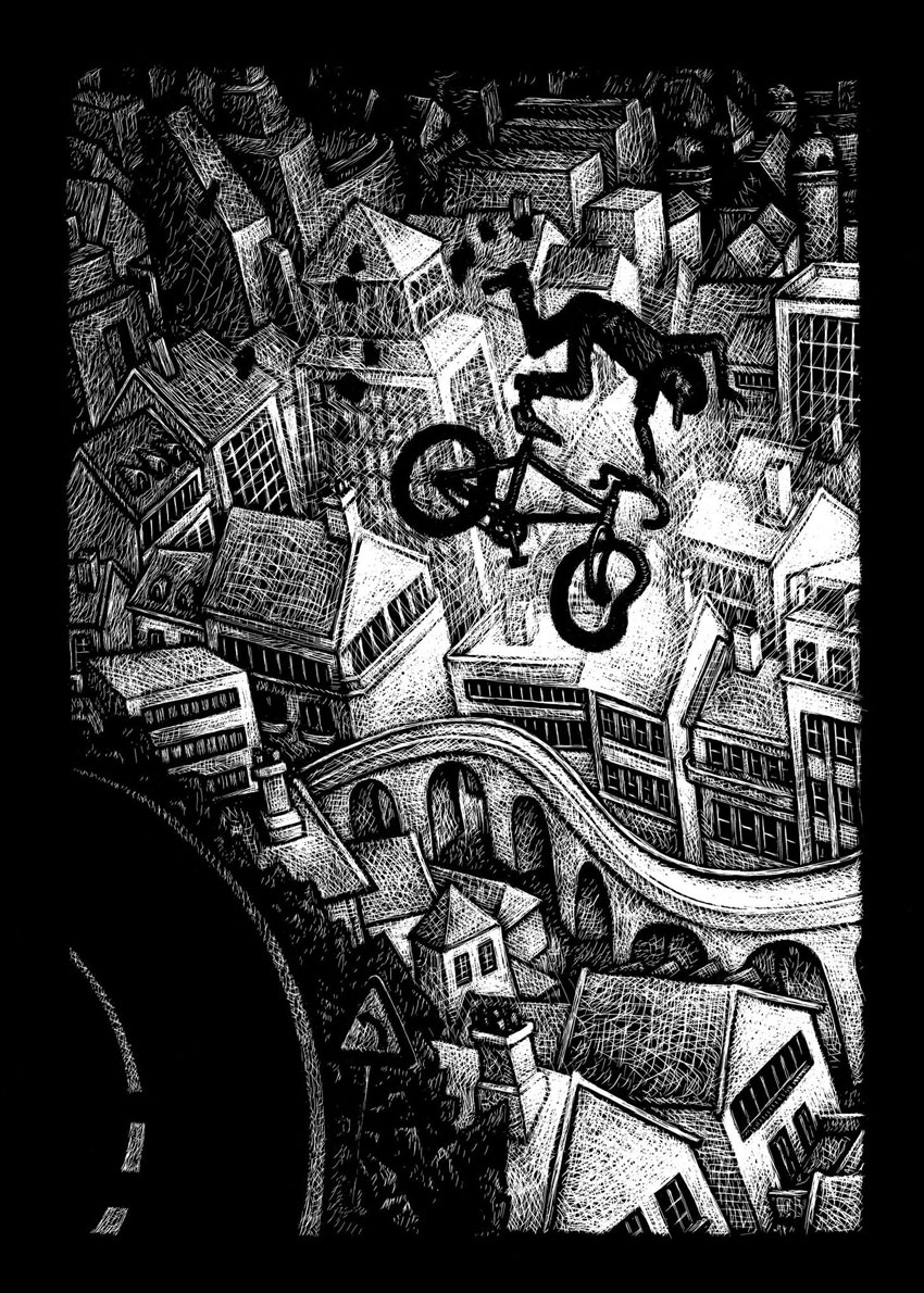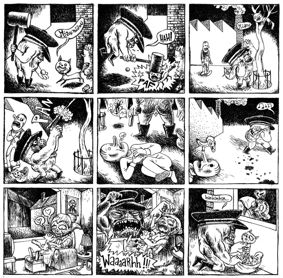 Emre Orhun was born in 1976 in Beijing, China, as a child of Turkish parents. During his early childhood, he moved around a lot, living in Belgrade (Yugoslavia, nowadays Serbia), Brussels (Belgium), Stockholm (Sweden), Oslo (Norway) and Ankara (Turkey). In 1993, he was adopted and moved to Lyon, France. From a young age, he preferred drawing lessons over regular classes. When people asked him what he wanted to be when he grew up, he always answered janitor or garbageman, because he preferred to be left alone and just doodle in the background. Art school was a relief to him, since teachers didn't yell at him for drawing during their lectures. Among his main graphic influences have been Katsuhiro Otomo, Thomas Ott and Roland Topor. After studying architecture for two years in France, Orhun studied art and graduated at the École Emile Cohl in Lyon. Since 2005, he has been a teacher in Narrative Illustration at his old school.