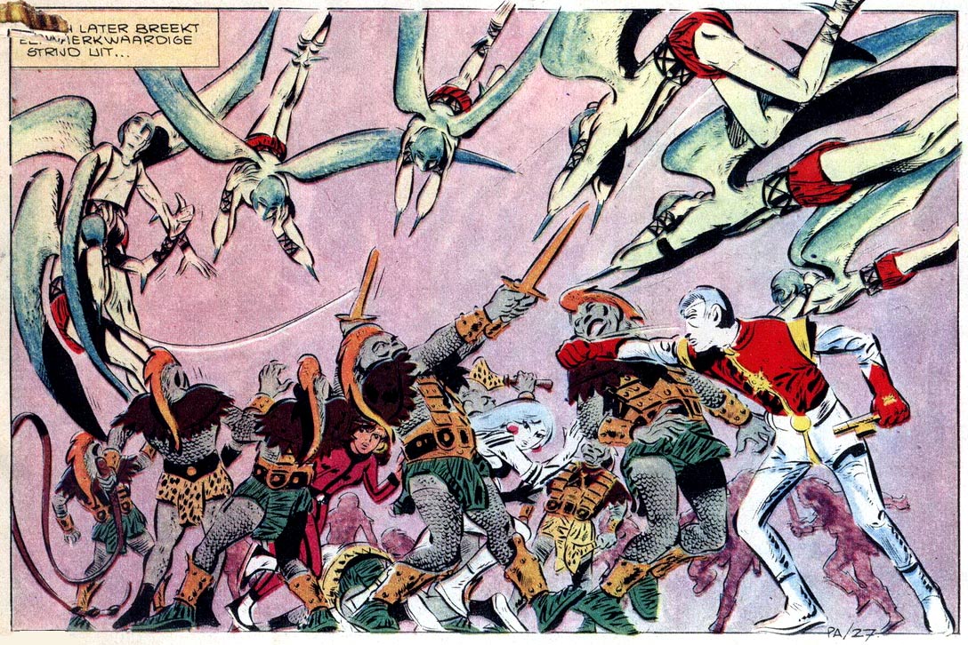 The first cycle of five stories was set on the planet of Terango, and drew heavily from classic series like Alex Raymond's 'Flash Gordon' and William Ritt and Clarence Gray's 'Brick Bradford'. Many sci-fi clichés were there, including a dictatorial extraterrestrial constitution, weird and implausible science, damsels in distress and strange creatures. The second cycle of six stories dealt with genetic manipulations, unknown races and other dangers on Earth, and was followed by four albums about the exodus of an entire race. By the early 1980s, Greg was doing business in the United States, and had handed over the writing duties to French movie director Gérard Jourd'hui. The effort wasn't a success, and Paape completed the story 'Roubak - Ultime Espoir' (1983) by himself. Another story with Greg followed in 1984 ('Caragal'). In 1990, a collection of older short stories, written by Greg, Jourd'hui and André-Paul Duchâteau, was published and it wasn't until 1994 that Paape and Greg made a new adventure with their hero. By then however, the public deemed the once so innovative Belgian sci-fi series too traditional, and 'Rendez-Vous à 20h en Enfer...' (1994) remained the last completed album.