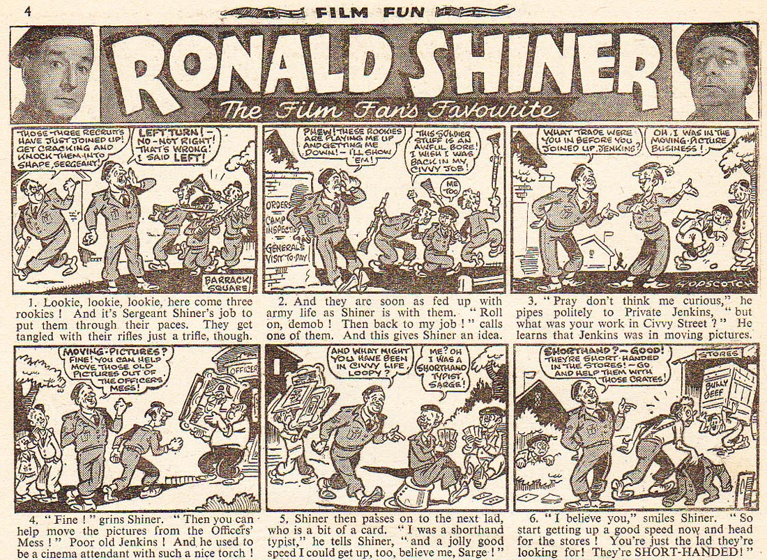 'Ronald Shiner' feature in Film Fun #1805 (21 August 1954).