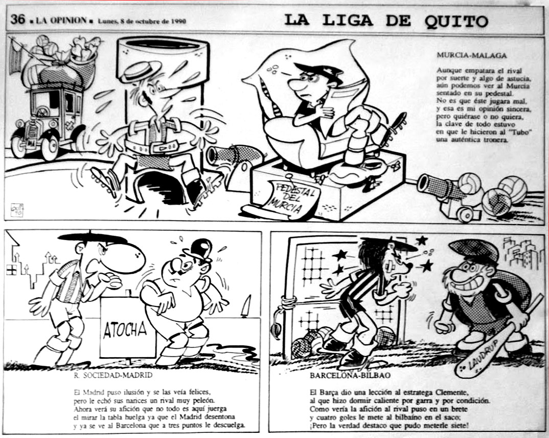 'La Liga de Quito', sports cartoons for La Opinión (8 October 1990).