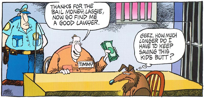 'Mother Goose & Grimm', referencing the TV series 'Lassie'.