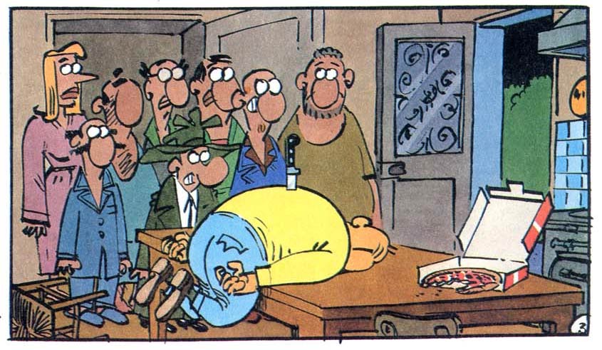 Palmer's publication history seems to be as confusing as his investigations. By 1976, the strip disappeared from Pilote, finding a new spot in the satirical comic magazine L'Écho des Savanes, only to return in Pilote in 1982 and then move back to L'Écho des Savanes in 1989. From 1987 onwards, one-page gags also appeared in Charlie Hebdo magazine and subsequently the weekly news magazine VSD, while a new story was prepublished in Le Canard Enchaîné in 2009. In the meantime, the series also made appearances in B.D. and Télérama. Book collections were published by Éditions du Fromage, Albin Michel, Dargaud and then Albin Michel again.