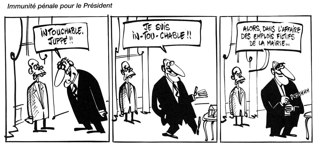 Comic strip collected in the album 'On Aura Tout Vu' (1999), satirizing French Prime Minister Alain Juppé and President Jacques Chirac.