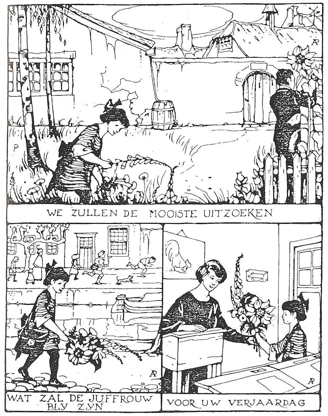 Anton Pieck was a Dutch illustrator, well-known for his characteristic cozy and nostalgic style. Although he was active throughout most of the 20th century, one couldn't tell from looking at his work, as all of Pieck's paintings and drawings are set in the past. He made countless atmospheric works depicting 19th-century scenes. The Romantic illustrator was well-known for his portrayals of fairy tales, such as his iconic drawings for 'Grimm's Fairy Tales' (1940) and 'Arabian Nights' (1943-1956), which later became the template for the theme park De Efteling. Pieck's illustrations have been popularized by greeting cards, calendars and other merchandising, making him an audience favorite, while others have reviled him for being petty kitsch. Still, friend and foe couldn't deny that he was a highly accomplished draftsman with a unique and instantly recognizable style. In the 1920s, Pieck drew some rare picture stories for the magazine Zonneschijn, with text captions underneath the images. Some of his children's books also occasionally made use of illustrated sequences.