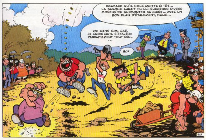 For a book publication, he also redrew short 'Achille Talon' stories that had originally appeared in the pocket book-format in Achille Talon Magazine. Several of the gag pages drawn by Pire were collected in the 1984 comic book 'Achille Talon N'a Pas Tout Dit...' (volume #36). He also drew the majority of volume #37, 'L'Archipel de Sanzunron' (1985), originally an advertising album commissioned by Crédit Lyonnais. Pire additionally drew the skyscraper backgrounds of the New York-based 'Achille Talon' episode 'L'Appeau d'Éphèse' (Dargaud, 1991).