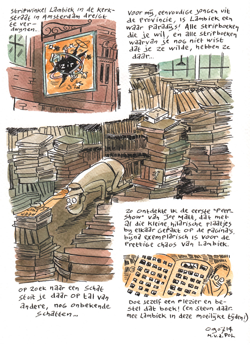2014 comic by Michiel van de Pol in support of comic shop Lambiek in Amsterdam.