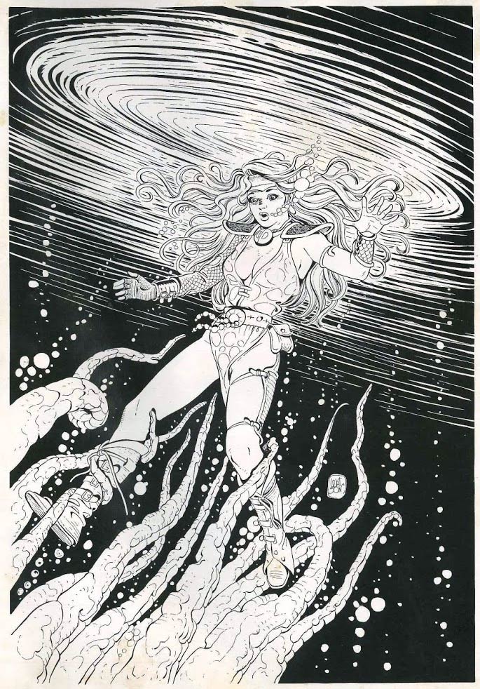 In 1980, Portela moved again, this time to Curitiba, where his association with the publishing house Grafipar and its editor Cláudio Seto began. Under the pen name Barroso, he produced both science fiction and erotic stories. For a couple of years, Portela and his colleagues Mozart Couto and Rodval Matias were the main creators for the publisher's adult-oriented publications with creations inspired by Japanese, European and US comics. Portela's 'A Saga de Xanadu' (1982) ran in Almanaque Xanadu and was designed in a manga style. The same goes for 'Robô Gigante' (1982), which sailed on the popularity of the giant robot franchises which dominated 1980s youth culture. 'Super-Gay' was a naughty parody of the American superheroes by Marvel and DC Comics, and appeared in a 1982 one-shot book, while the dramatic western 'Rex' was based on DC's 'Jonah Hex' (created by John Albano and Tony De Zuñiga). Portela also drew installments of 'Zamor, o Selvagem' ("Zamor, the Savage"), a series created by Franco de Rosa with a Tarzan or Conan-like hero in the legendary city of Atlantis.