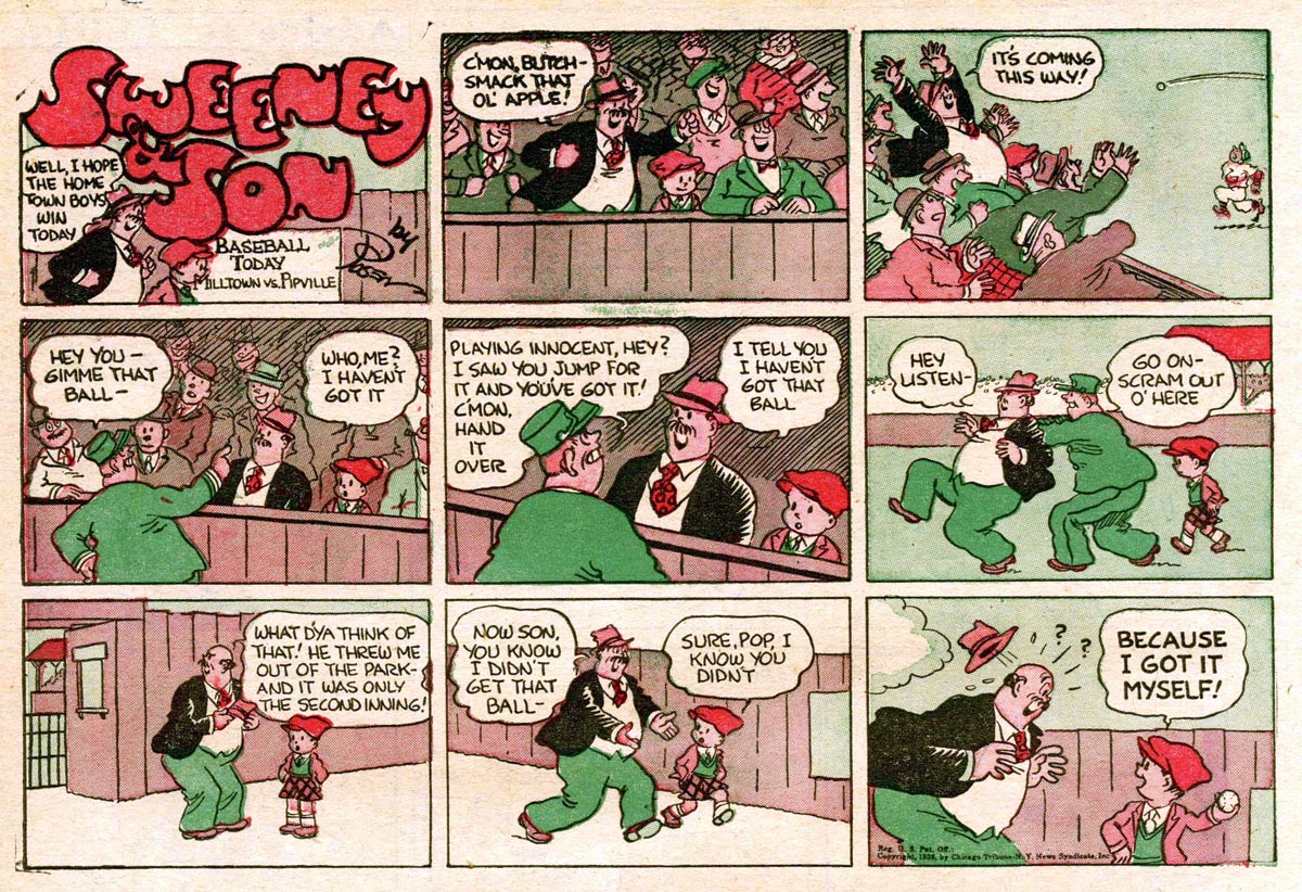 By 1933, Posen drew the Sunday page 'Ella and Her Fella' for the New York News Syndicate, which only ran for four months and also made use of rhyme. On 1 October 1933, Posen replaced 'Ella and Her Fella' with the more durable gag-a-week comic 'Sweeney & Son' (1933-1960), starring the humorous events in the life of a bumbling father and his son. 'Sweeney & Son' ran for more than 25 years, and the final episode appeared in print on 21 August 1960.