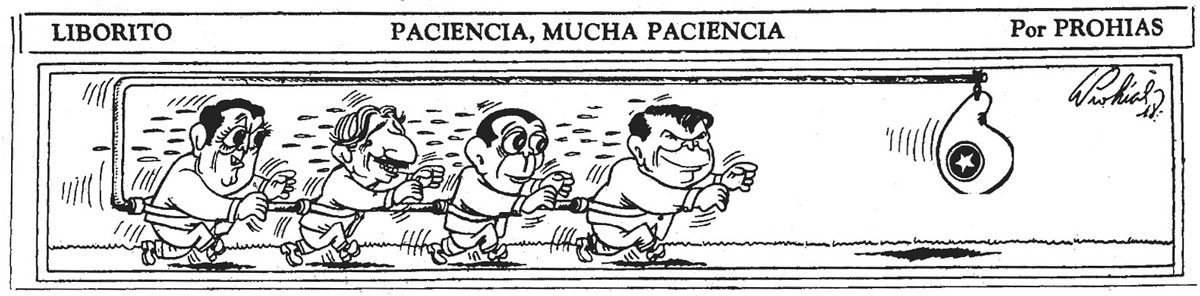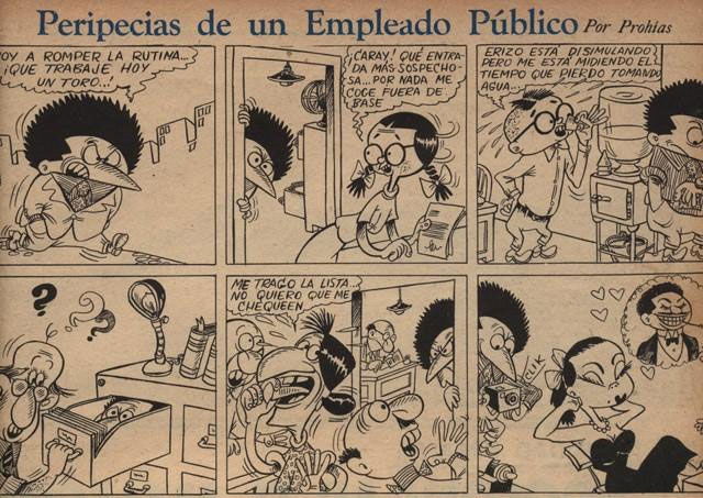 Prohías' political gag comic 'Liborito' (1948) debuted in Diario de la Marina. The comic starred a little man, Liborito, who was a take-off of Liborio (1905-1931), the national representation of Cuba as created by Cuban cartoonist Ricardo de la Torriente in La Politica Cómica. In Prohías' version, however, Liborito is a little man who interacts with caricatures of real-life politicians. Prohías also made a gag comic, 'Erizo' (1948), which ran in Carteles, while his comic 'Oveja Negra' ("Black Sheep", 1949), about a young boy, appeared in Información. Soon he moved up the ladder as the house cartoonist of El Mundo, the newspaper with the largest circulation in Cuba.