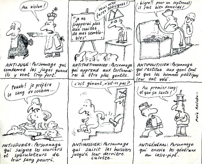 Fernando Puig Rosado was a Spanish illustrator, who spent most of his life in France. Born in Don Benito, he studied Medicine in Spain, before turning to illustration. One of his main graphic influences was Jean Bosc. Puig Rosado moved to France in 1960, where he went to work for the children's publications of Bayard Presse. His work appeared in magazines like Astrapi, J'Aime Lire, Okapi and Phosphore, and also in publications from Switzerland, the UK and Spain. He additionally worked for advertisements, school books and the animation industry. He was also a regular contributor to satirical and literary publications like Siné Mensuel, Le Canard Enchaîné, Le Nouvel Observateur and Le Figaro Littéraire.
