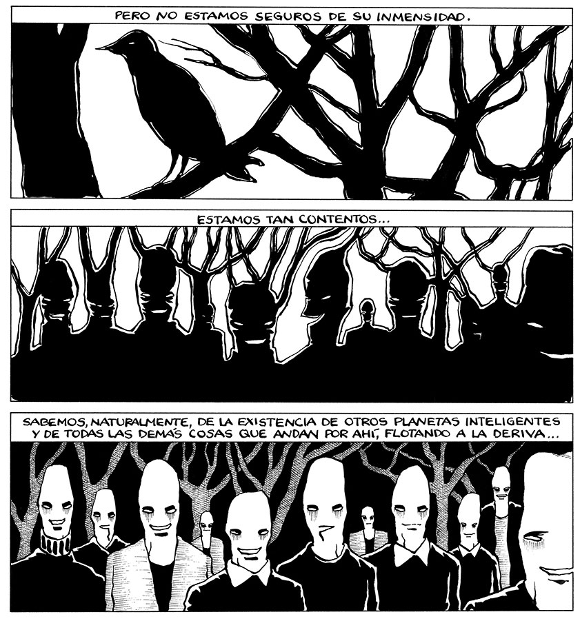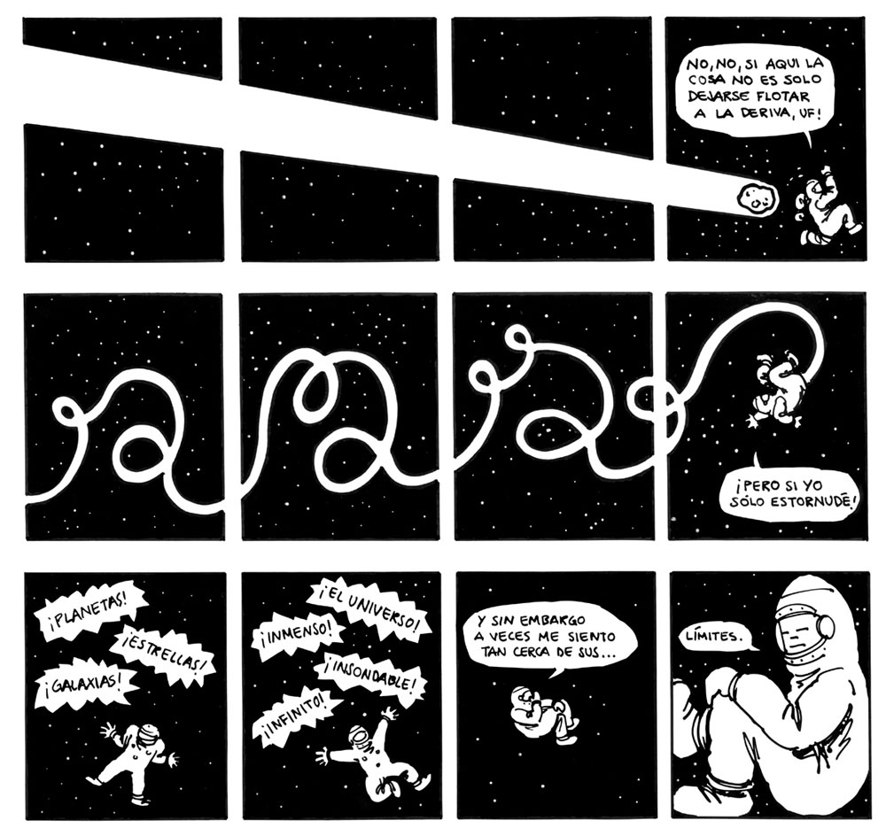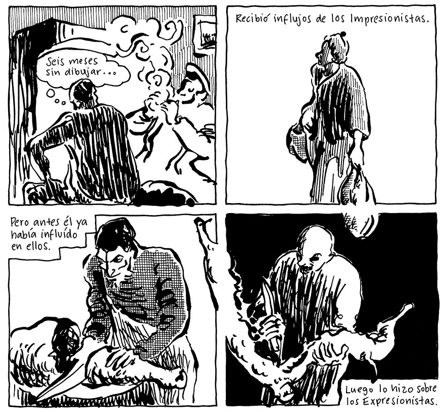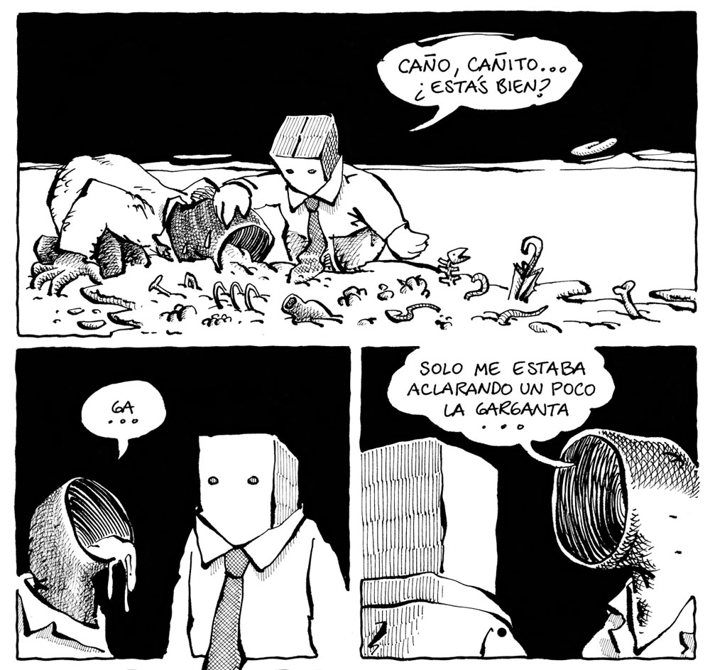 Artishock Revista serialized his comic 'Los Sofistas', about two enlightened mutants who decide to take over the world and destroy it. The Chilean book edition was published by Ril Editores in 2015 and the Argentinian one by Tren en Movimiento in 2018. His next book was 'Pocketland' (Loco Rabia, 2019), a collection of melancholic, absurd and experimental stories about the "world of things".