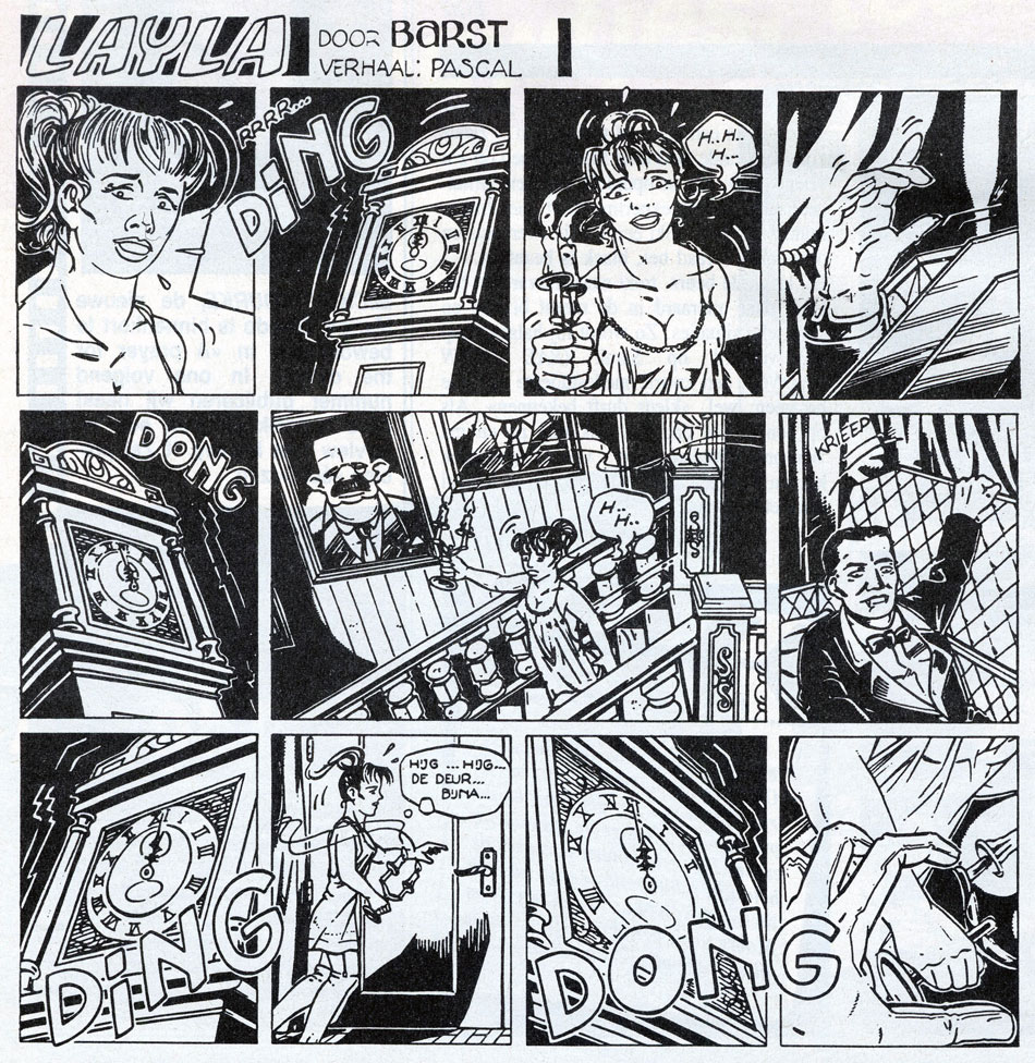 Between 4 March and 16 November 1987, Ramakers drew a comic strip titled 'Layla', using the pseudonym Barst. Scripted by Pascal Lefèvre (under the pseudonym Paliski), the comic ran in Film Take One, a magazine issued by the video store company SuperClub to promote their latest video releases. The plot of 'Layla' revolved around a man who sabotages film sets in Hollywood. Lefèvre and Ramakers knew each other from their college years. When 'Layla' was serialized, Ramakers was fulfilling his military service, so he drew the comic in his spare time.