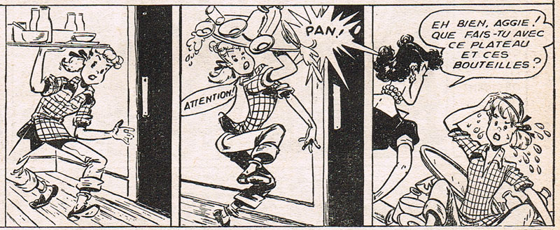 'Aggie' became especially popular in France, where it first appeared in Fillette in 1947, and was continued in a European version drawn by Gérard Alexandre, who signed with the pseudonym Al.G. In America, the series was taken over by Roy Fox after Rasmusson's death in 1962 until 1971.