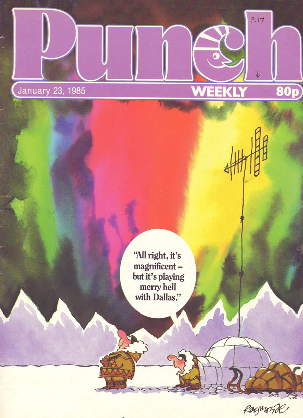 Cover cartoons for the Punch issues of 15 November 1977 and 23 January 1985.