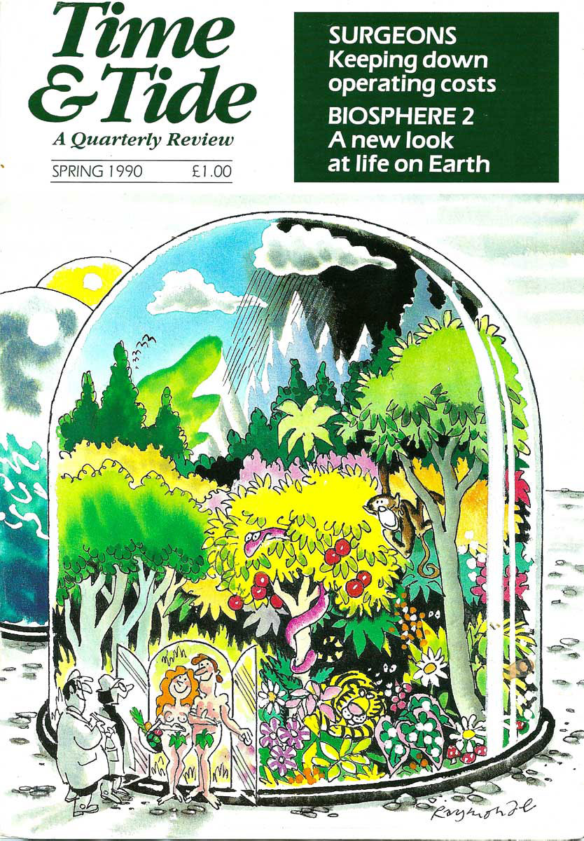 Cover drawing for the Spring 1990 issue of Time & Tide magazine, about the Biosphere 2.