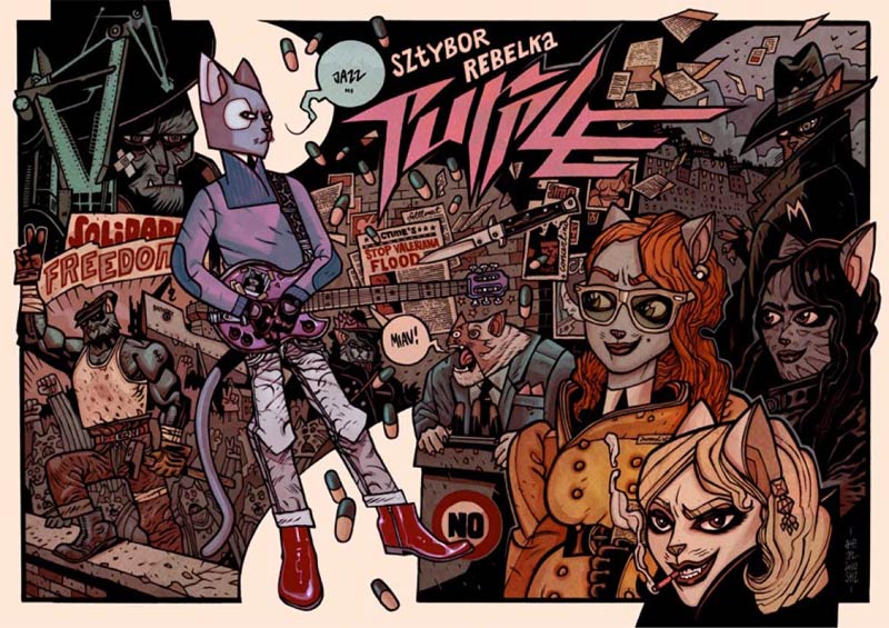 Rebelka also worked on the critically praised video game 'The Witcher 2: Assassins of Kings' (2011) as illustrator for the animated cutscenes and background/character designer. He is a renowned painter of public art murals and his work can be seen in Gdansk, Sopot, Warsaw and Bremen. He lives with his family in Gdansk where he works as an illustrator.