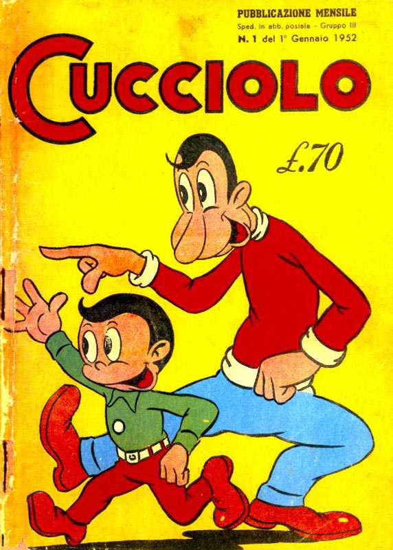 The Milanese artist Giorgio Rebuffi began his career in comics in 1949, while still a medicine student. He made his first work for the publisher Alpe, including the features 'Lo Sceriffo Fox' and 'Bingo Bongo'. The publisher assigned him to take over 'Cucciolo e Beppe' from Rino Anzi in 1952. He restyled the series completely, transforming the main characters from dogs to humans and introducing many new characters, most notably the wolf Pugacioff. That same year, he created the elastic comic character 'Tiramolla', together with Roberto Renzi.