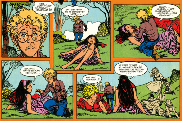 Redondo also became a regular artist for Tina by Oberon in The Netherlands. His most notable work for this magazine was the 'Eduard & Emily' series he made with writer Otto Veenhoven from 1974. It was also published in Spain as 'Mili y Eduardo' in Christie, Gina and Esther. He continued to draw for Tina in the Netherlands well into the 1990s and 2000s. His credits include various independent short stories, as well as 'Stewardess Paula' with Andries Brandt and the historical series 'Filou' written by Constance van der Heide.