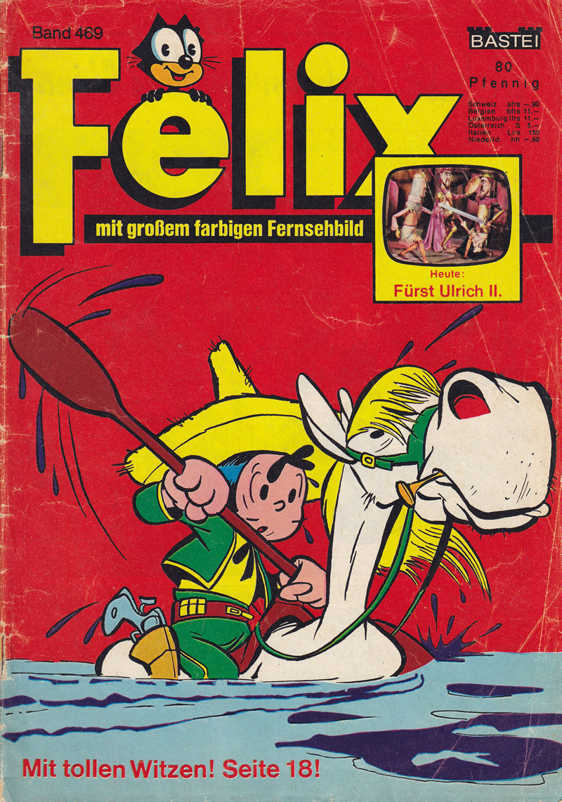 In the second half of the 1960s, Reindl Dachsel became prolific suppliers to the magazines of Bastei Verlag. In Felix magazine, they continued their earlier 'Pablo und Rosalia' feature, and provided several stories of the magazine's title comic, which was based on the Joe Oriolo design of Pat Sullivan and Otto Messmer's cartoon cat Felix. Under their Atelier's supervision, Heinz Körner developed the characters of the funny animal feature 'Wups und Waldi' (1966-1968), which was subsequently drawn for Felix by Franz Roscher for two years.