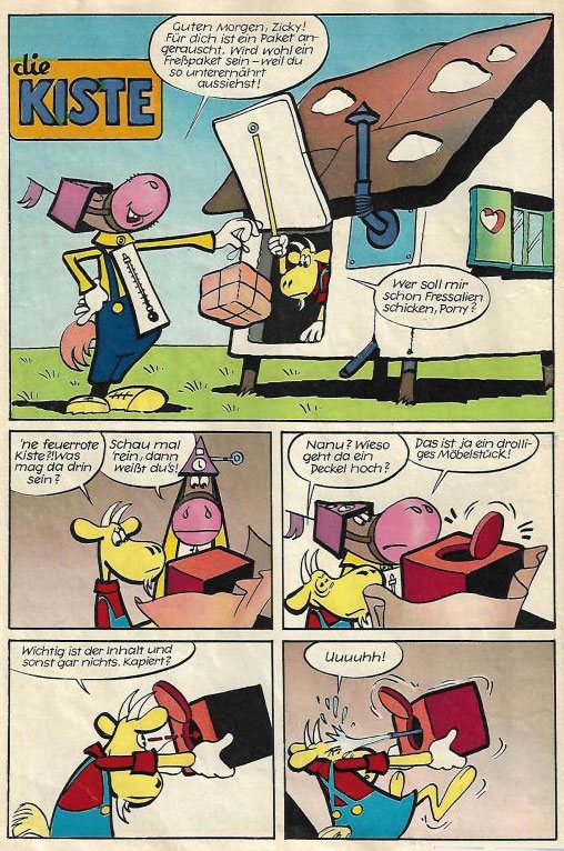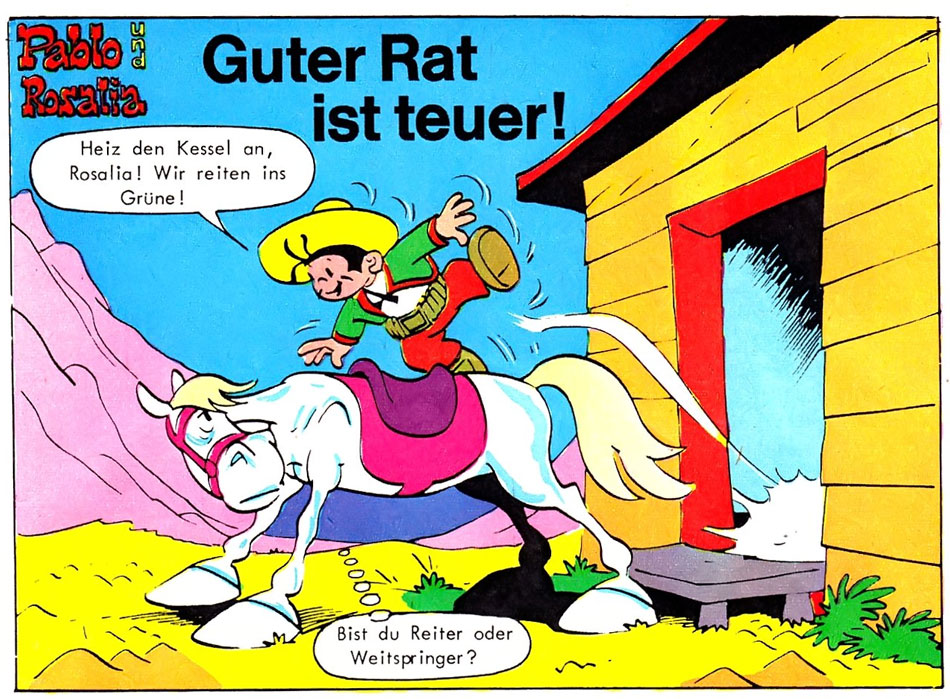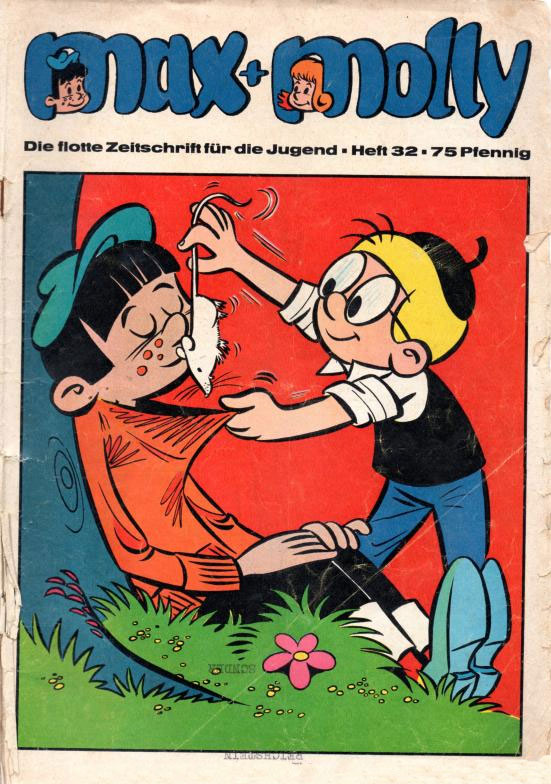 In April 1964, the first weekly issue of Max + Molly appeared, strangely enough with issue number #20. The title characters were two skinny teenagers, created by Werner Hierl, but initially drawn by a female artist from Strasbourg, known as "M. Becker". Since most of the art staff came from Kauka, several of the features had a strong Kauka vibe, for instance 'Plop' by Franz Roscher and 'Hasi' by Branco Karabajic. Reindl and Dachsel themselves are credited with the feature 'Pablo und Rosalia', about a smart Mexican and his quirky mare. When the first issue of Max + Molly appeared, Kauka was fully surprised and, to say the least, not amused. Especially since the early issues also contained material by Walter Neugebauer, one of his most loyal co-workers, who was still working for him. As it turned out, the latter was unaware of the inclusion of his work, and it is believed the original pages were taken from the Kauka offices by Dr. Kirchdürfer. With the remaining staff he had left, Kauka desperately tried to fill his new Fix und Foxi issues, but his lawyers assured him that he could not take action against his former artists, saying: "They're freelance artists... and not serfs! Make them better offers, and get them back!"