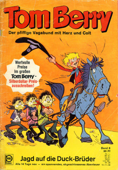 For Pabel-Verlag, Max Reindl and Josef Dachsel were part of the early production team of the humorous western comic 'Tom Berry - Der pfiffige Vagabund mit Herz und Colt' (1968-1972). Initially, the issues were produced alternately in West Germany (Reindl-Dachsel) and Spain (Carlos Giménez). After a while, full production was handled by Studio Ortega in Spain, which employed artists like Carlos Gimenéz, Francisco Díaz Rojo, José Castillo, Alfonso Borillo, Jaime Mainou and Jesús Blasco. Eventually, the 'Tom Berry' series was restyled by the Belgian artist Karel Verschuere and his studio, who gave the character a more realistic appearance. By the request of readers, this was later changed back again.