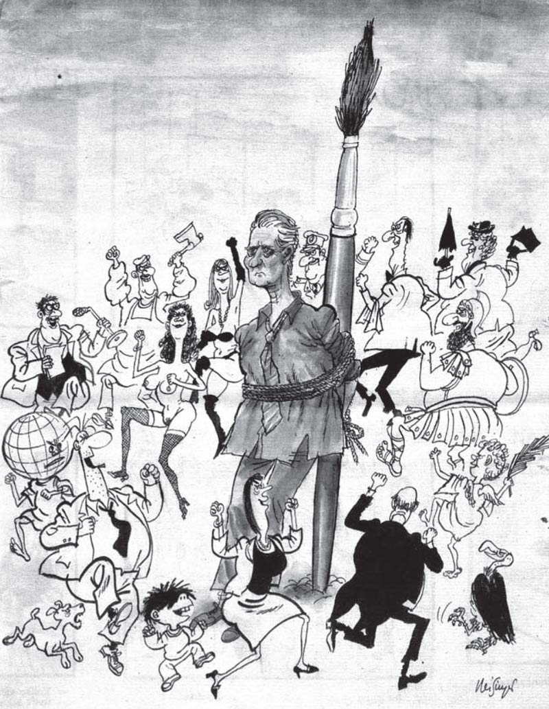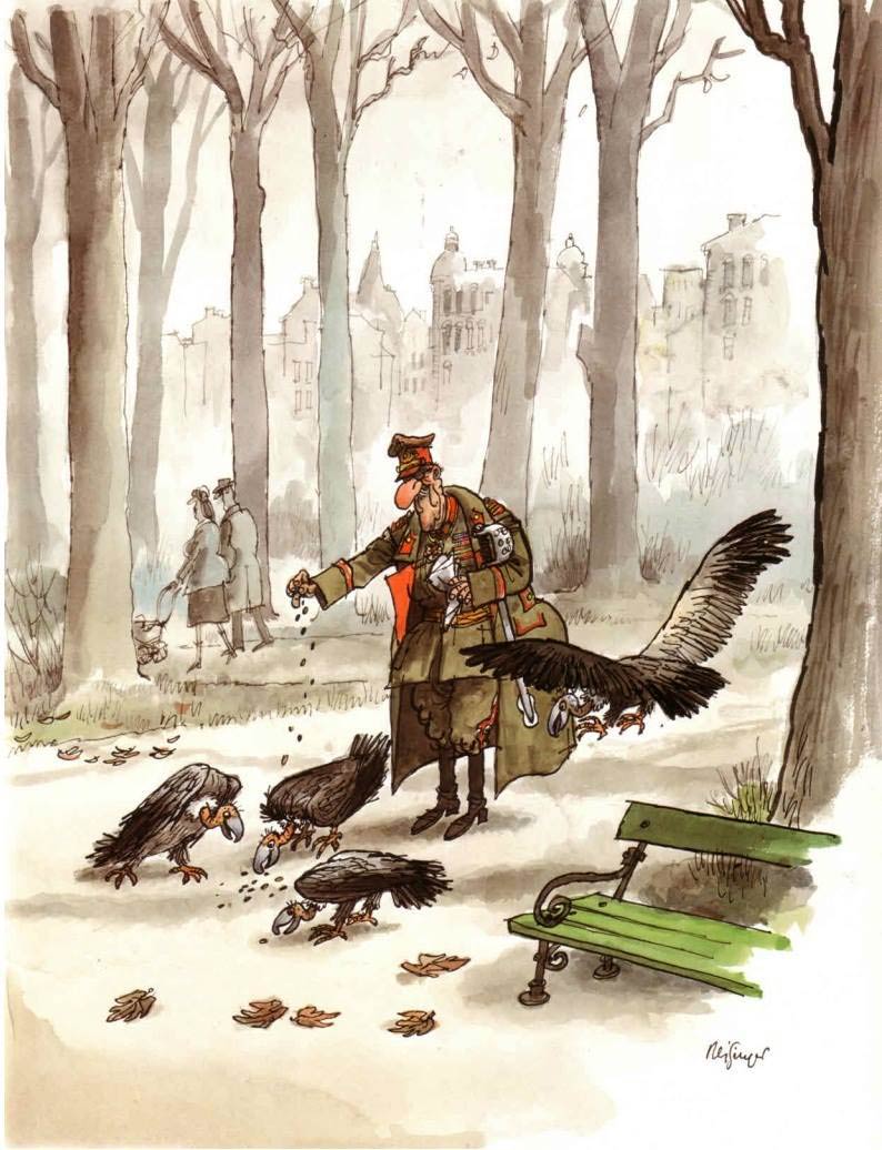 Although Reisinger officially retired from cartooning in 1986, he remained productive until his death. When Yugoslavia succombed into a civil war (1991-1995), he felt it was his responsibility to comment on the way his country was torn apart by nationalist groups. In the book 'War and Peace' (Zagreb, 1995), he presented a satirical chronicle of the War in Former Yugoslavia.