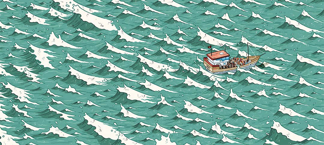 In May 2018, Rietman's book 'Exodus' was released through SubQ. It balances on the border of comic and illustration, and follows a group of refugees from a war zone until their final destination. The story is told through 45 interconnected pages which, combined, form one long drawing of about 14 meters.