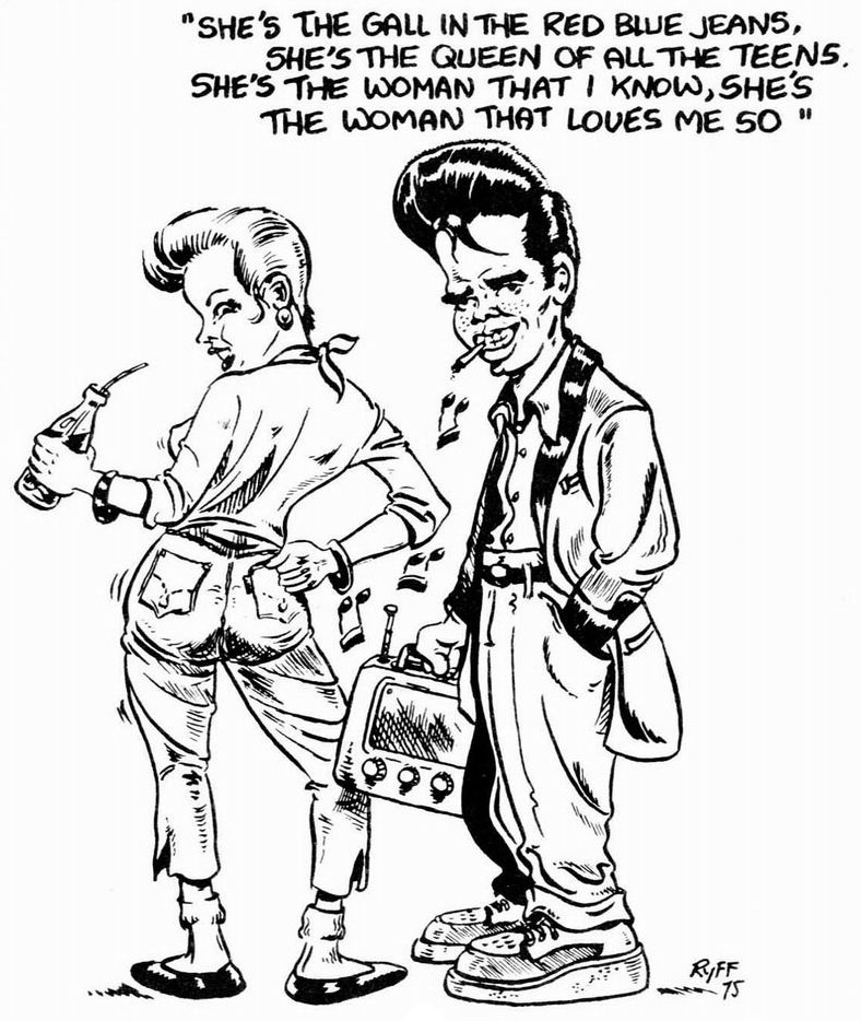 Gerrit Johannes Rijff was born in 1951 in Amsterdam. Like many youngsters of his generation, he was mesmerized by rock 'n' roll, especially its king, Elvis Presley. Rijff's brother - who was seven years older - was a genuine teddyboy or "nozem", as Dutch rebellious teens were called in the 1950s. He bought many 45 rpm vinyl singles, which Rijff enjoyed as well. Along with his fascination for rock, Rijff also developed a passion for the United States. He loved Hollywood movies, jukeboxes, large cars, drive-ins and, in short, Americana in general. He collected photographs and other imagery about these topics. U.S comics were naturally a point of interest too. He tried copying these drawings and friends and family told him that he had genuine talent. While still a high school pupil, Rijff followed a two year course in decoration painting, learning how to provide lettering to posters.