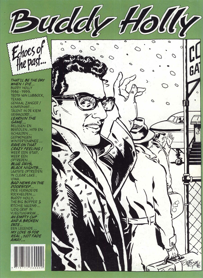Back cover from Wordt Vervolgd #70 (1986), depicting Buddy Holly.