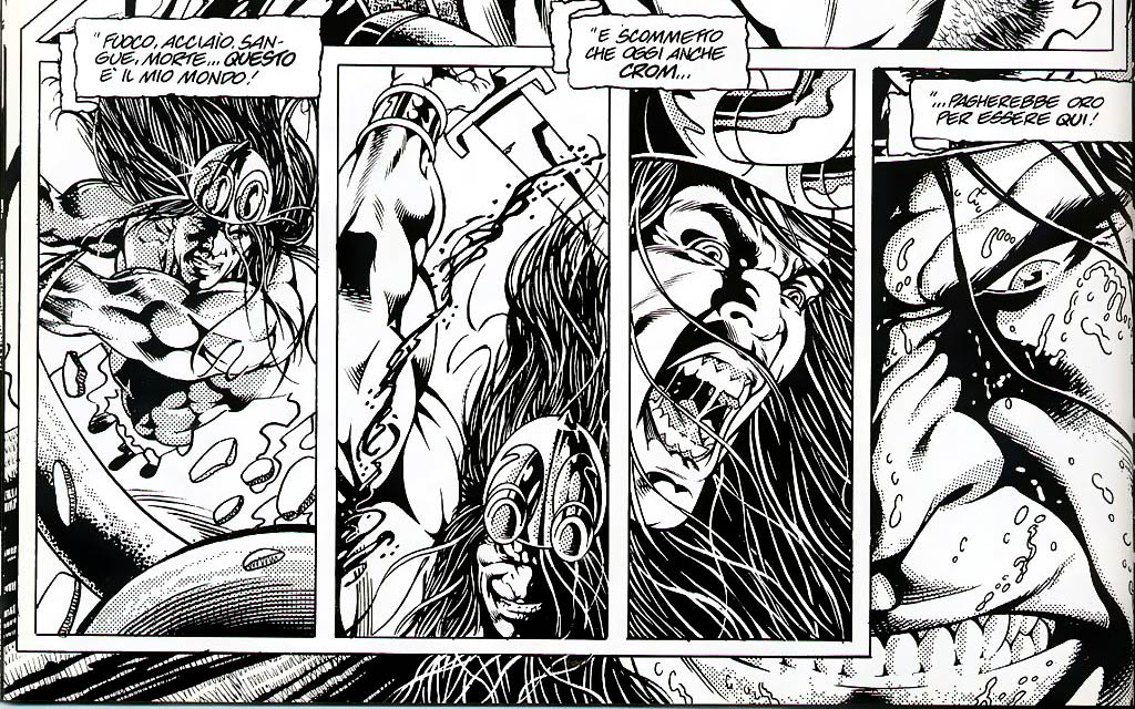Rinaldi continued to do fill-ins on several Marvel series in the second half of the 1990s. He replaced Dante Bastianoni for the fourth issue of 'Fantastic Force' (1995), and penciled issues of 'Ultrafoce' (#4, 1995), 'Thor' (#498, 1996), 'Captain America' (#453, 1996) and 'Ka-Zar' (#6, 1997). He was one of the pencil artists of the Marvel graphic novel 'The Phoenix Resurrection: Aftermath' (1996), along with Jeff Lafferty, John Cleary and John Royle. A project with Jean Marc DeMatteis about a relaunch of Marvel's 'Doctor Strange' remained unpublished. In 1997, he was involved in a local production of 'Conan the Barbarian' comics for Marvel Italia, called 'Conan il Conquistadore' (two issues). The other artist on this series was Andrea Bianchi Carnevale, with stories written by Ade Capone and Xavier Marturet. Rinaldi was also a cover artist for the Marvel Italia editions of US comic books.