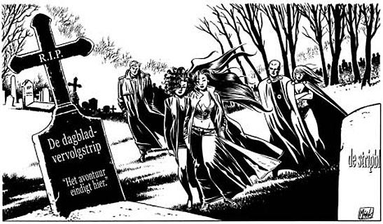 Oosterveer and Ritstier's newspaper characters symbolically bury the newspaper comics serial in 2008.