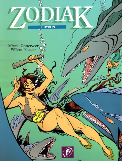 The main characters in 'Zodiak' are Tom van Santen and his girlfriend Caren van der Plas, who accidentally get lost in a world where life is based on the twelve zodiac signs. The authors deliberately gave their comic a pulpy look and feel, which especially was reflected in Oosterveer's sexy female characters. In interviews, Willem Ritstier has explicitly stated that 'Zodiak' had an ironic touch, and that he felt disappointed that general audiences didn't pick up on this, and only judged the series from a superficial viewpoint.