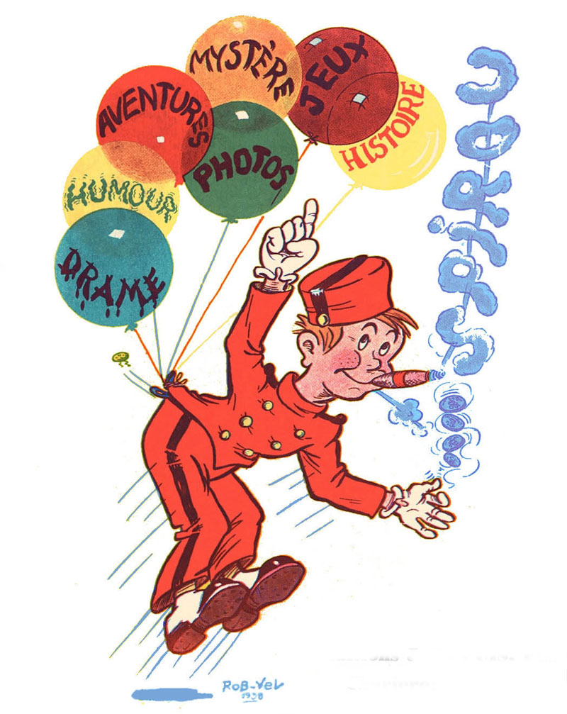 Still in 1937, the year he started 'Toto', Rob-Vel was approached for a new assignment by the Belgian publisher Dupuis. By then, the company had two popular family magazines in its portfolio, Bonnes Soirées and Le Moustique, and planned to launch a youth magazine. For the lead character, company patriarch Jean Dupuis envisioned a youthful boy, boisterous but with a heart of gold, that could embody both the company's playfulness and its devout Catholic morale. For his name, the Dupuis family picked "Spirou", the Walloon word for squirrel, also used to describe a clever and mischievous boy. During one of his visits to Paris, the publisher's son Charles Dupuis found exactly the artist they needed in Le Journal de Toto, Robert Velter. Coincidentally, Rob-Vel's wife Blanche Dumoulin and her friend Luc Lafnet were by then already working for the Dupuis magazines as illustrators under the pen name Davine.