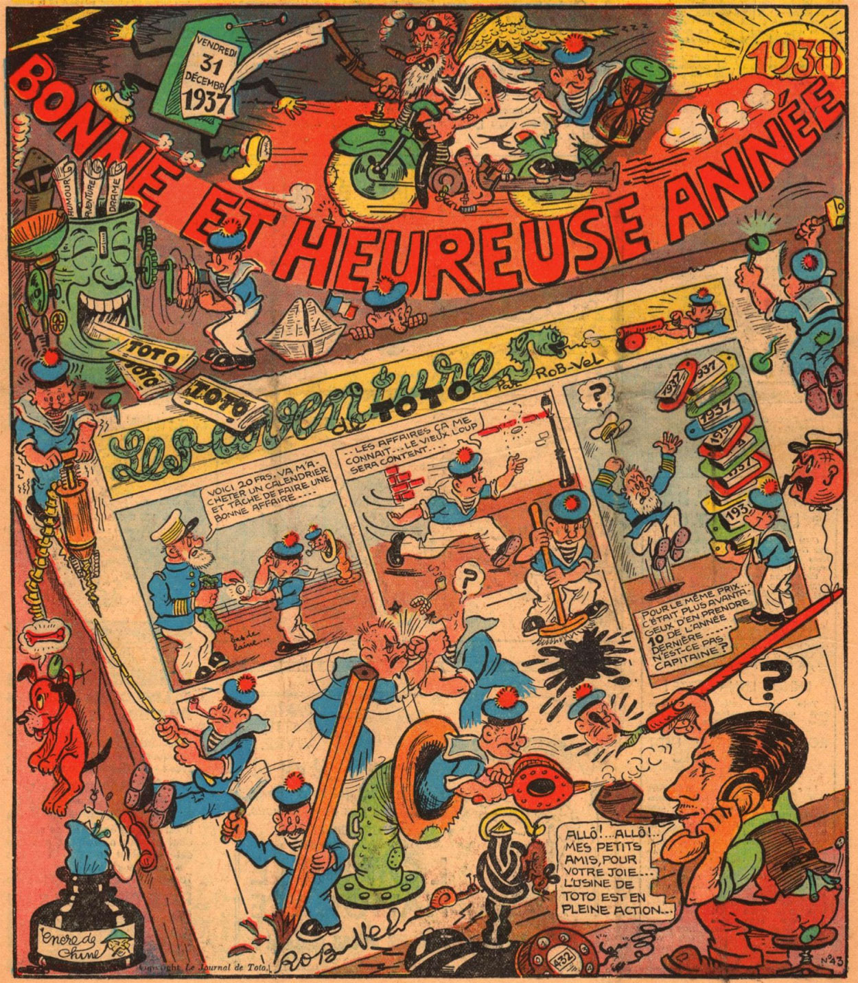 In his 'Toto' comics, Rob-Vel sometimes drew himself (Le Journal de Toto, 30 December 1937).