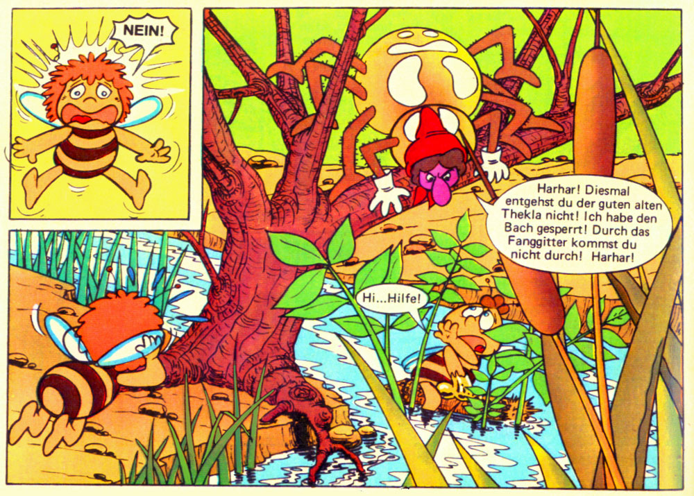 Roche then worked extensively on 'Maya the Honey Bee' ('Die Biene Maja'), based on a Japanese anime TV series, adapted from Waldemar Bonsels' children's books. Broadcast on German television since 1976, the series spawned 33 RPM gramophones by Deutsche Grammophon, picture books by Pestalozzi Verlag and a comic book series by Bastei Verlag (1976-1987), all with prominent Roche artwork. Roche drew about 160 comic stories with the friendly bee. After Maya came products with a host of other characters from Japanese anime series with a great popularity in Europe. Throughout the second half of the 1970s and 1980s, Roche drew the anime versions of 'Vicky the Viking' ('Wickie der Wikinger'), 'Nils Holgersson', the panda 'Taotao', 'Alice in Wonderland' and 'Heidi' for print publications, record covers and merchandising. He was a major contributor to the comic books starring these characters published by either Condor Verlag or Bastei Verlag.