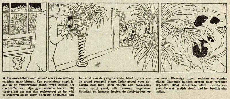 With Gerben Hellinga, he made the newspaper comic strip 'Oom' (1970-1971), starring the character Celia, for Het Vrije Volk. His improvised and experimental comic 'Het Leven en de Dood en het Televisiekijken' (1976-1977) was first published in Haagse Post. The 64 drawings of the story featured the so-called zoom effect, where a miniature of the previous panel was featured in every drawing. A colored version was made for an exposition in the following year and a film adaptation called 'Life and Death' won the first prize at the Cork Film Festival in Ireland in 1980.