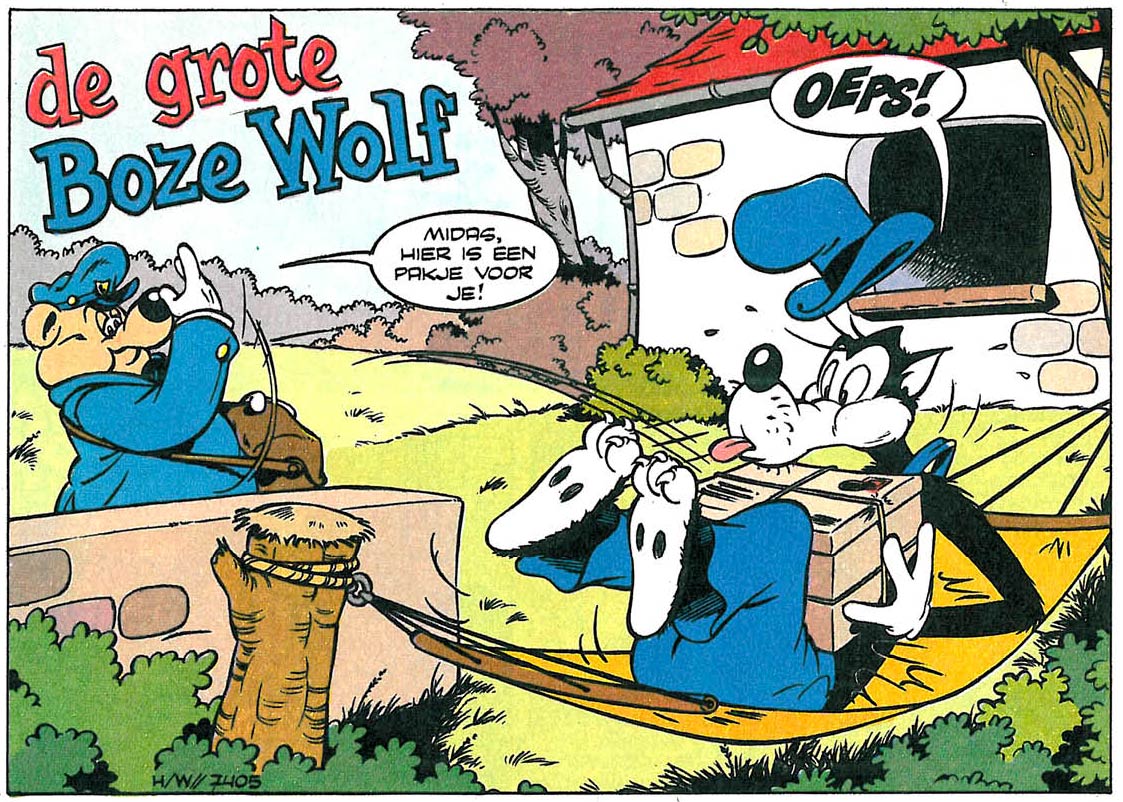 In May 1973, Roep applied for a job with the editor of Donald Duck weekly at Oberon, the comics division of the VNU publishing group. He was hired after submitting a test assignment, which included a script for a story with Walt Disney's 'Big Bad Wolf'. The comic was eventually drawn by Robert van der Kroft and published in Donald Duck issue #4 (24 January 1975).