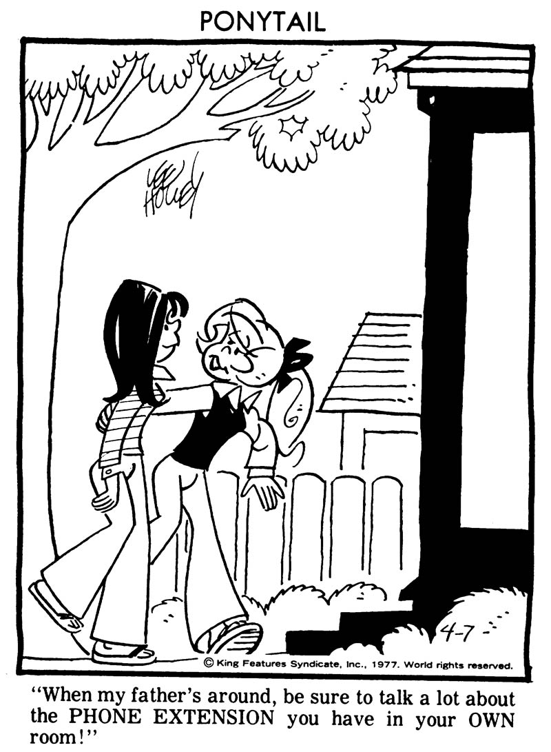 Original Ponytail comic strip by Lee Holley from 4 April 1977, and Thom Roep's modernized and edited version for Tina #13, 2017.