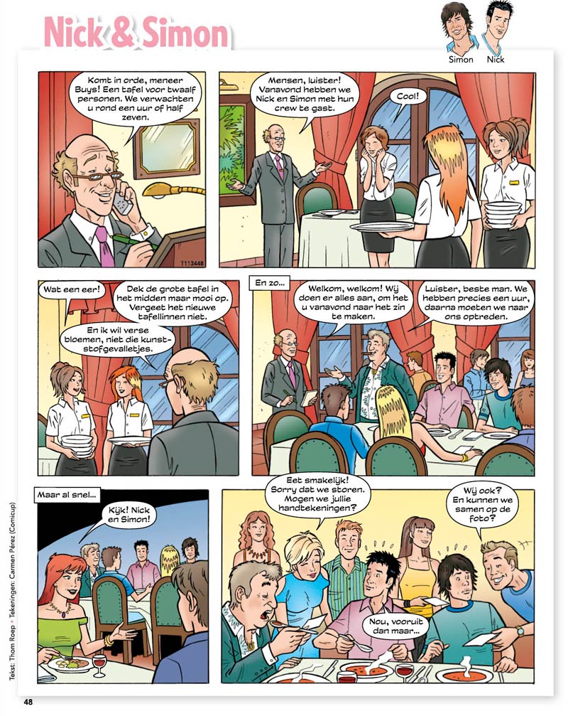 'Nick & Simon' script by Thom Roep, and the final page by Carmen Pérez from Tina #34, 2011.