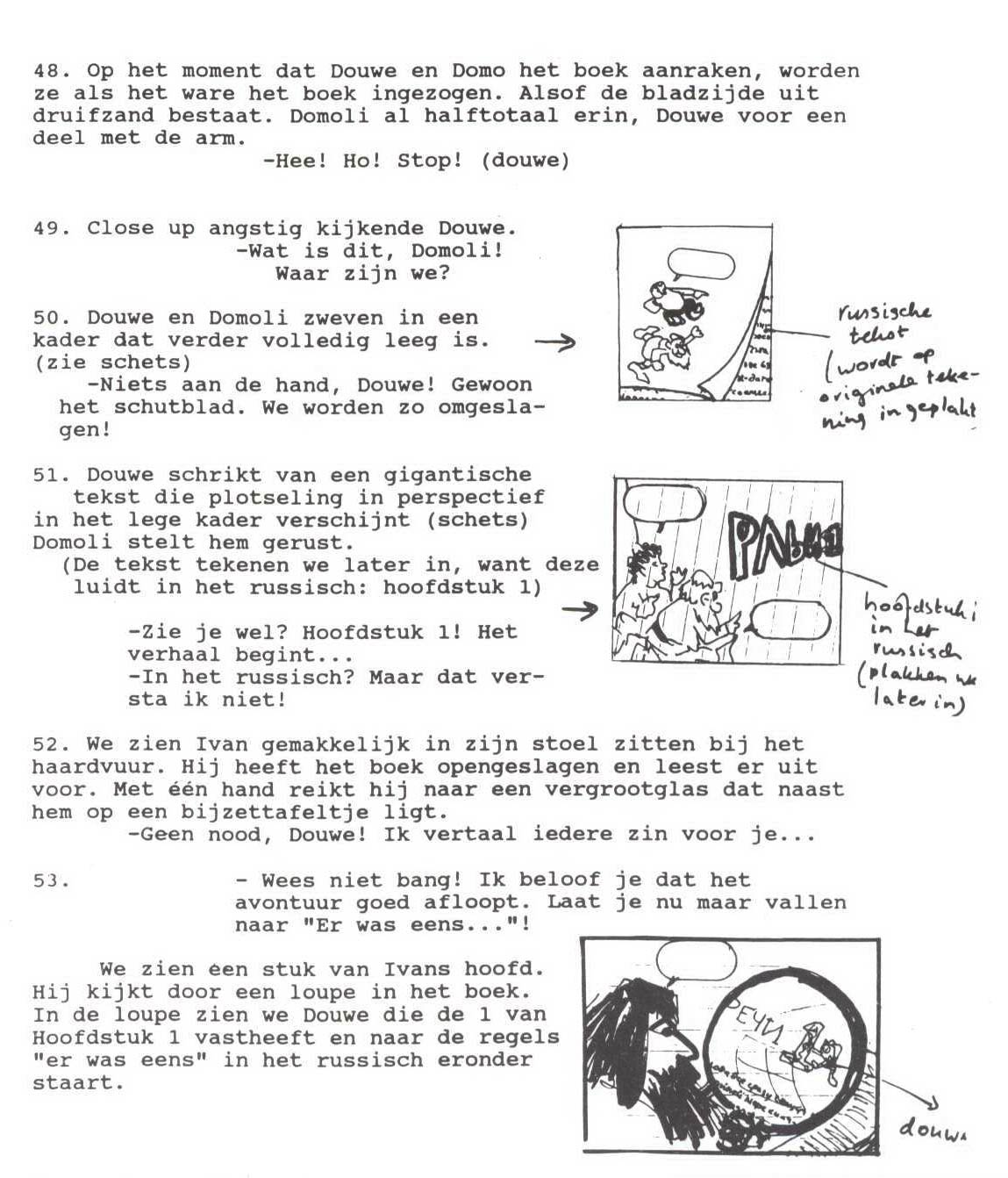 Thom Roep's script for page 8 of the 'Douwe Dabbert' story 'Het Schip van IJs' (1994), and Wijn's final version.