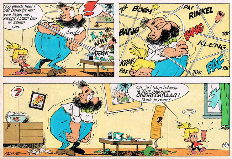 From 1968-69 until the early 1980s, he also made the irregular appearing gag strips 'Angélique' and 'Wladimyr', often in cooperation with his wife Monique or Raoul Cauvin. 'Wladimyr' won him the Prix Saint Michel in 1976. He also illustrated for editorial sections like 'L'Apache Qui Rit' and 'Qui Veut Jouer Au Blabladoigt'. In 1979, Roque's 'O Cruzeiro do Caranguejo' was reprinted in Spirou.